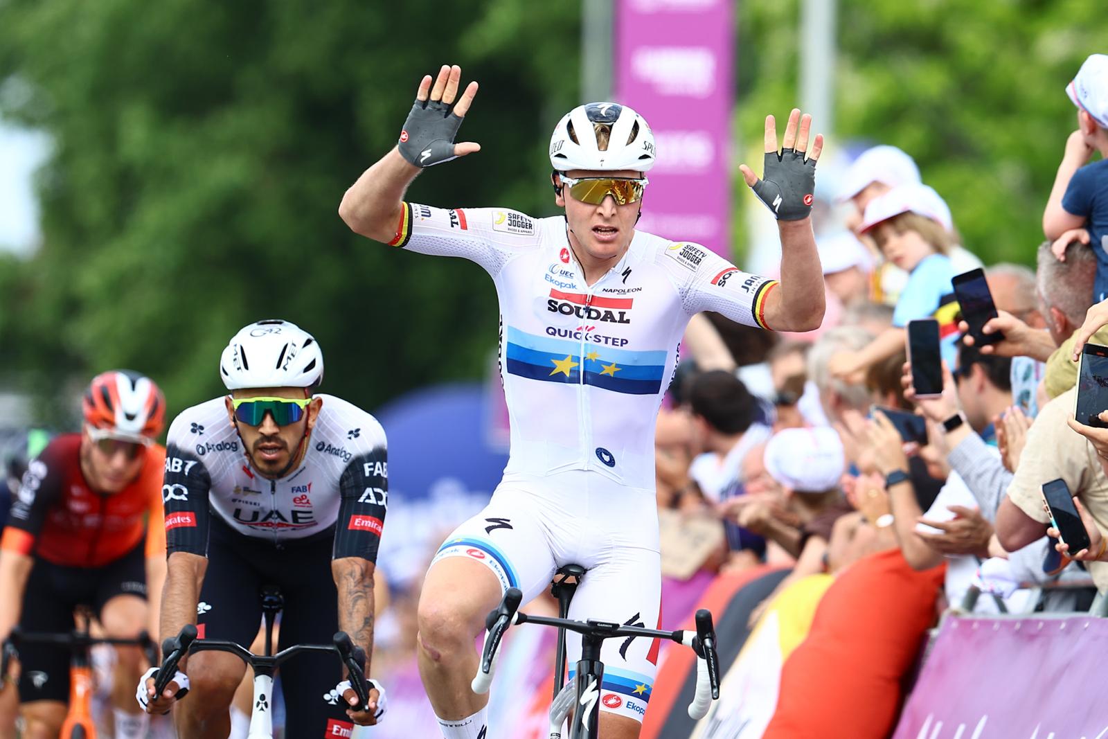 Europees kampioen Tim Merlier moest zelf zijn weg zoeken zonder zijn lekgereden loods Bert Van Lerberghe. “Ik wist dat ik dan zelf een manoeuvre moest